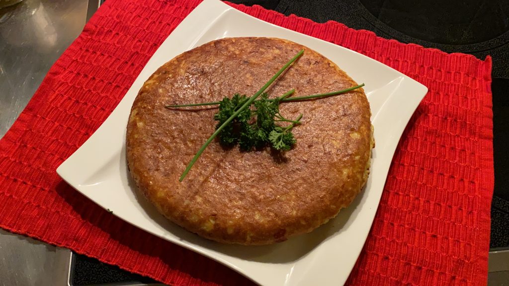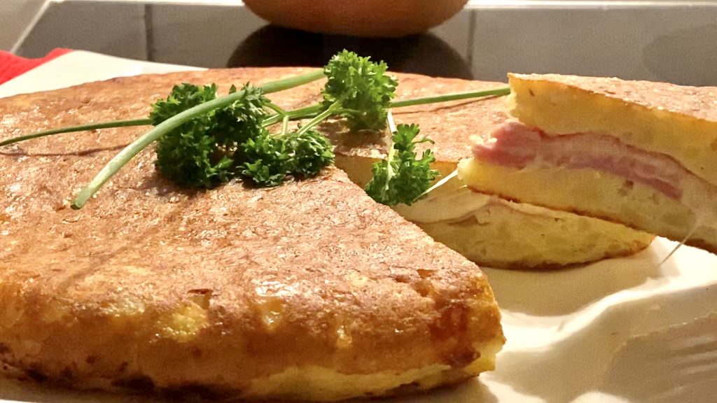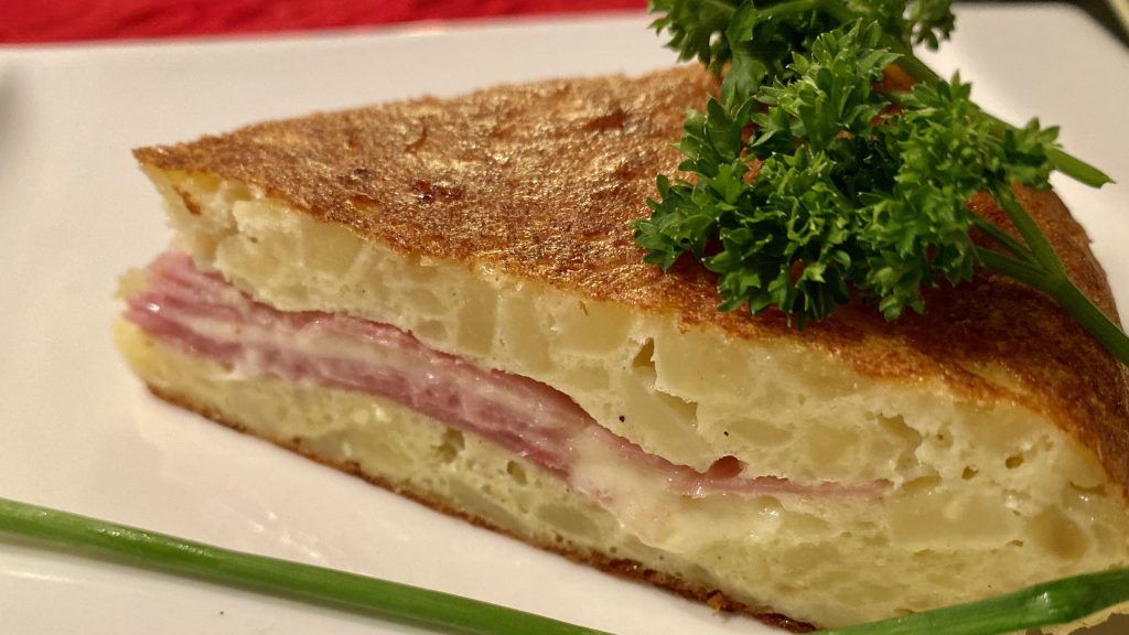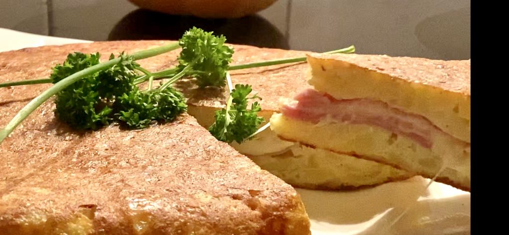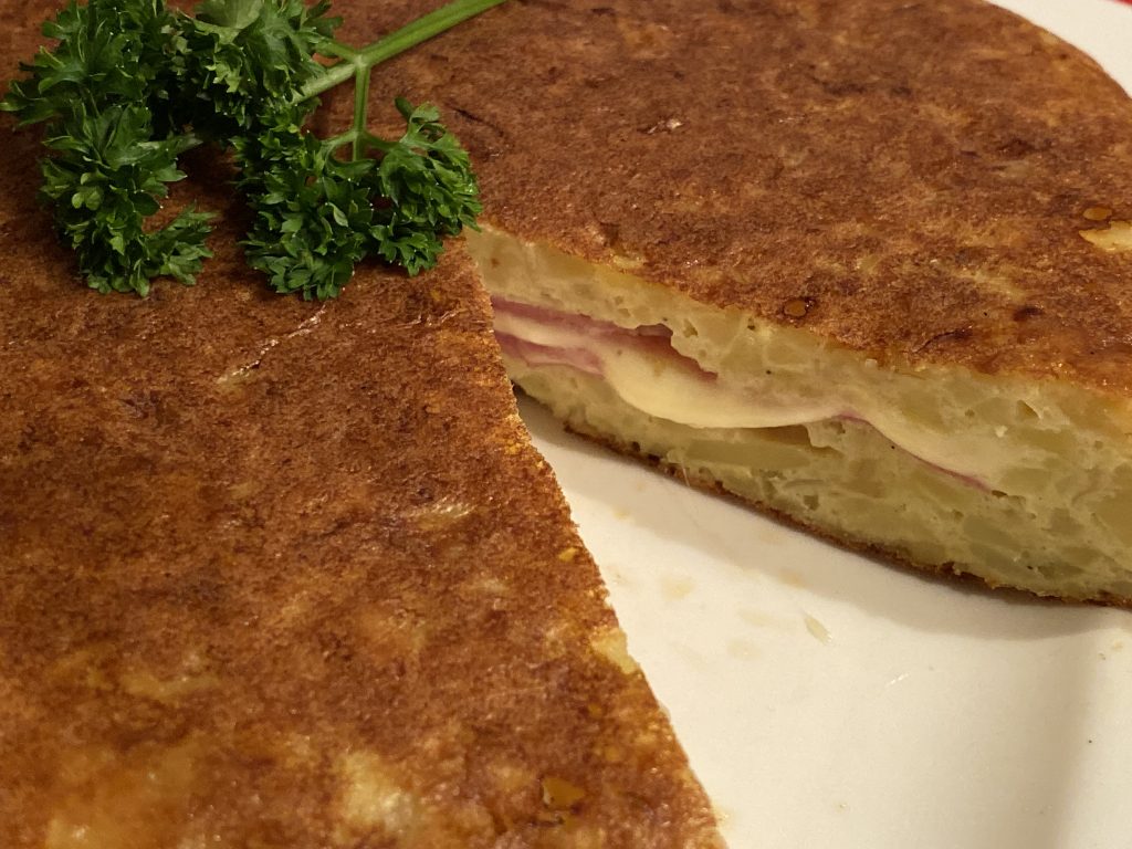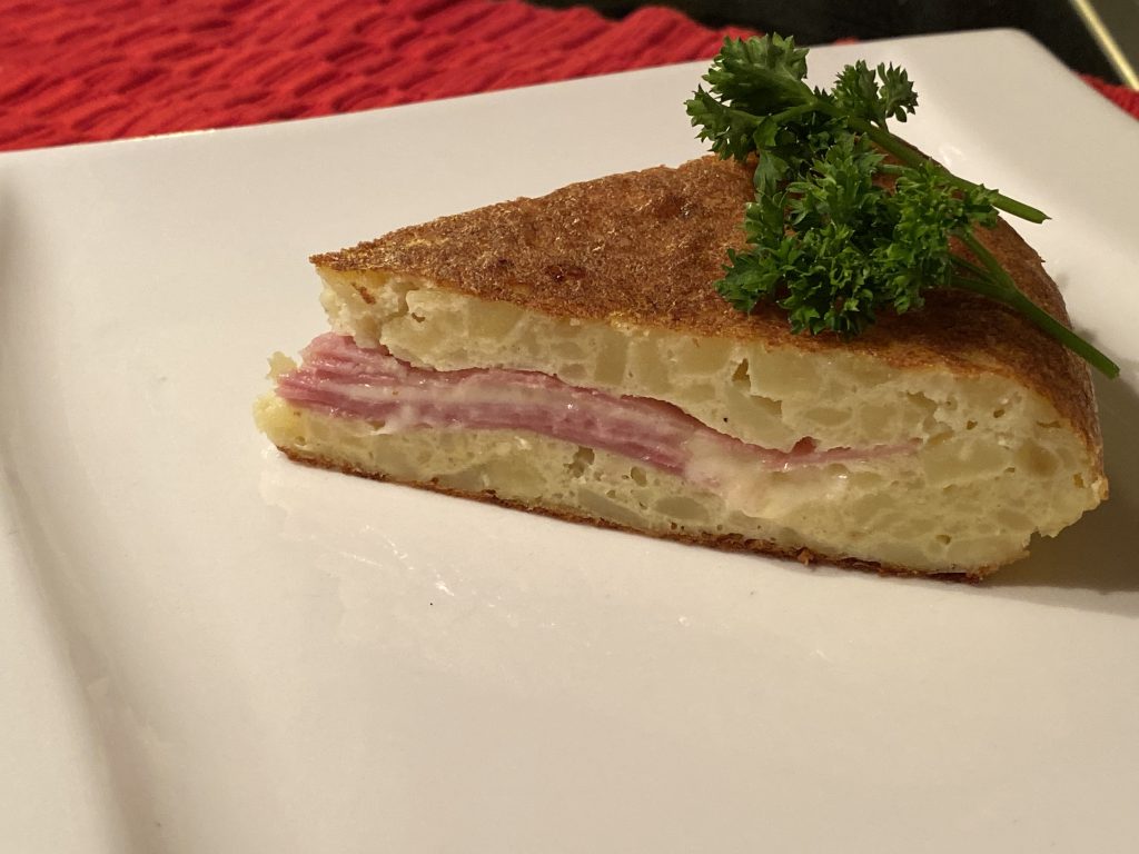 Got hungry for omelette one evening. Raided my fridge. With luck, there were eggs, ham, and cheese. Plus, there were potatoes.